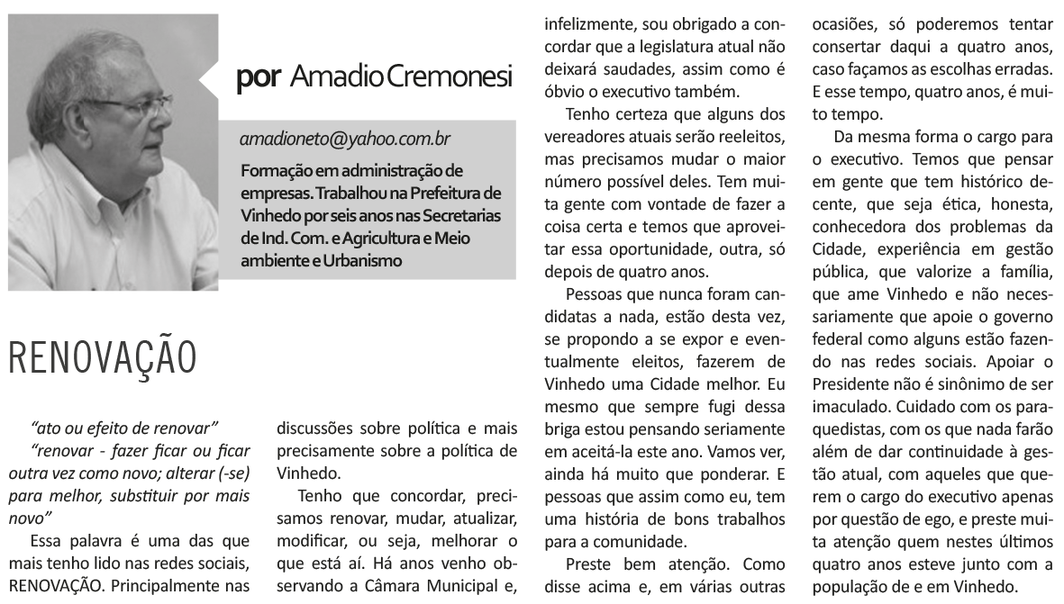 Ex-Diretor da Secretaria de Indústria, Comércio e Agricultura & da Secretaria de Meio Ambiente na Prefeitura de Vinhedo